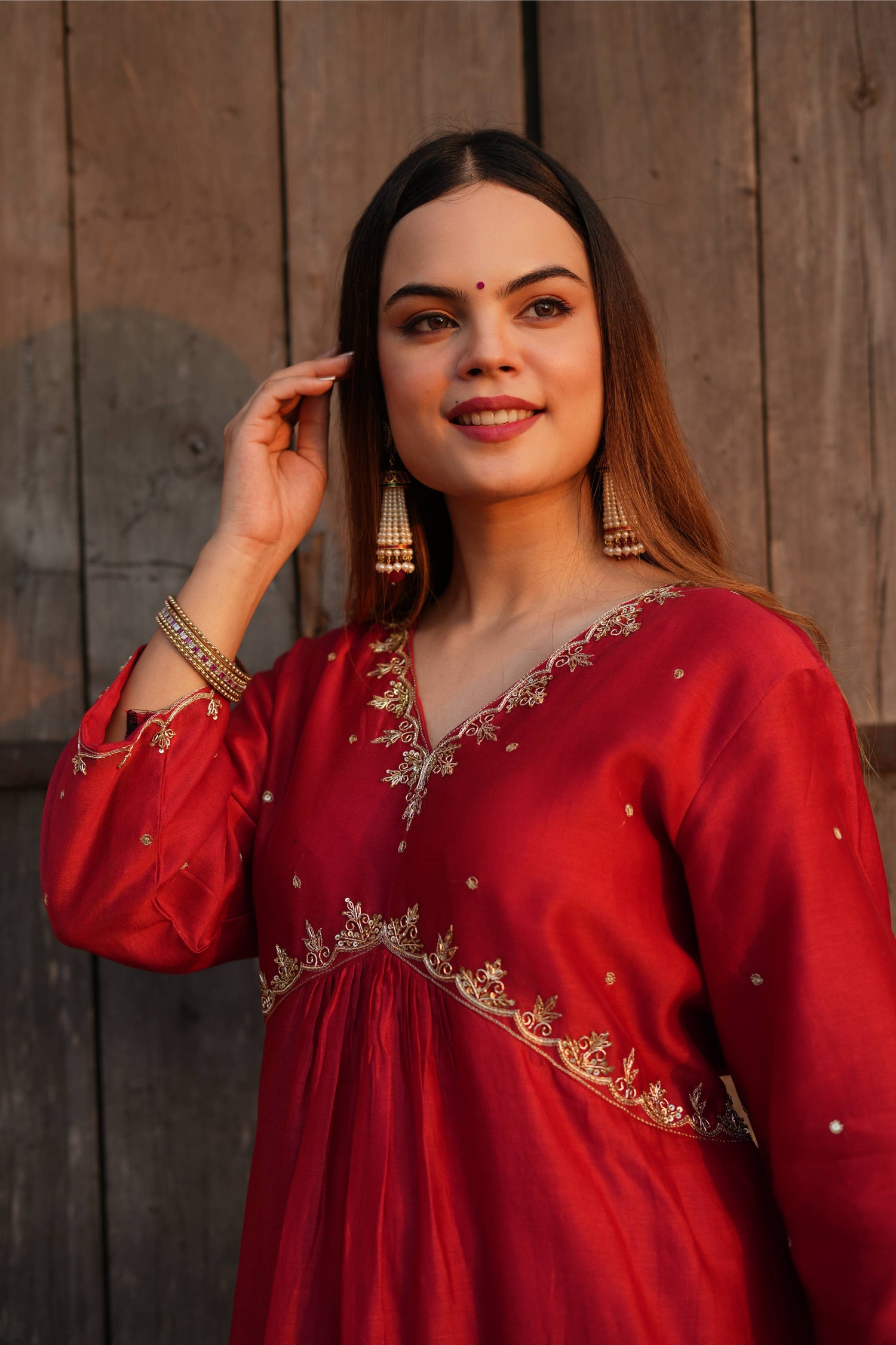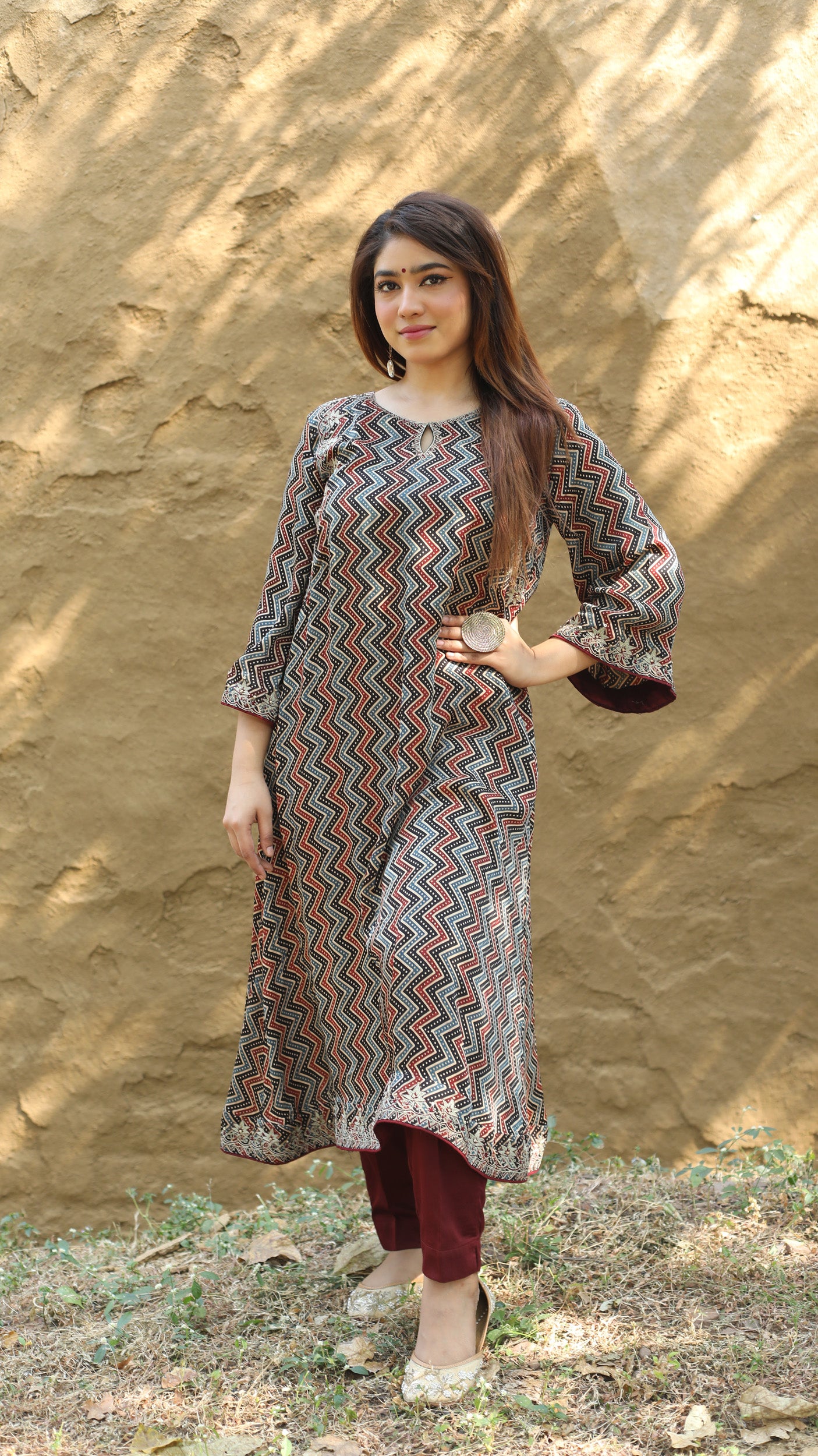 Red Ajrakh Angrakha Style Kurta