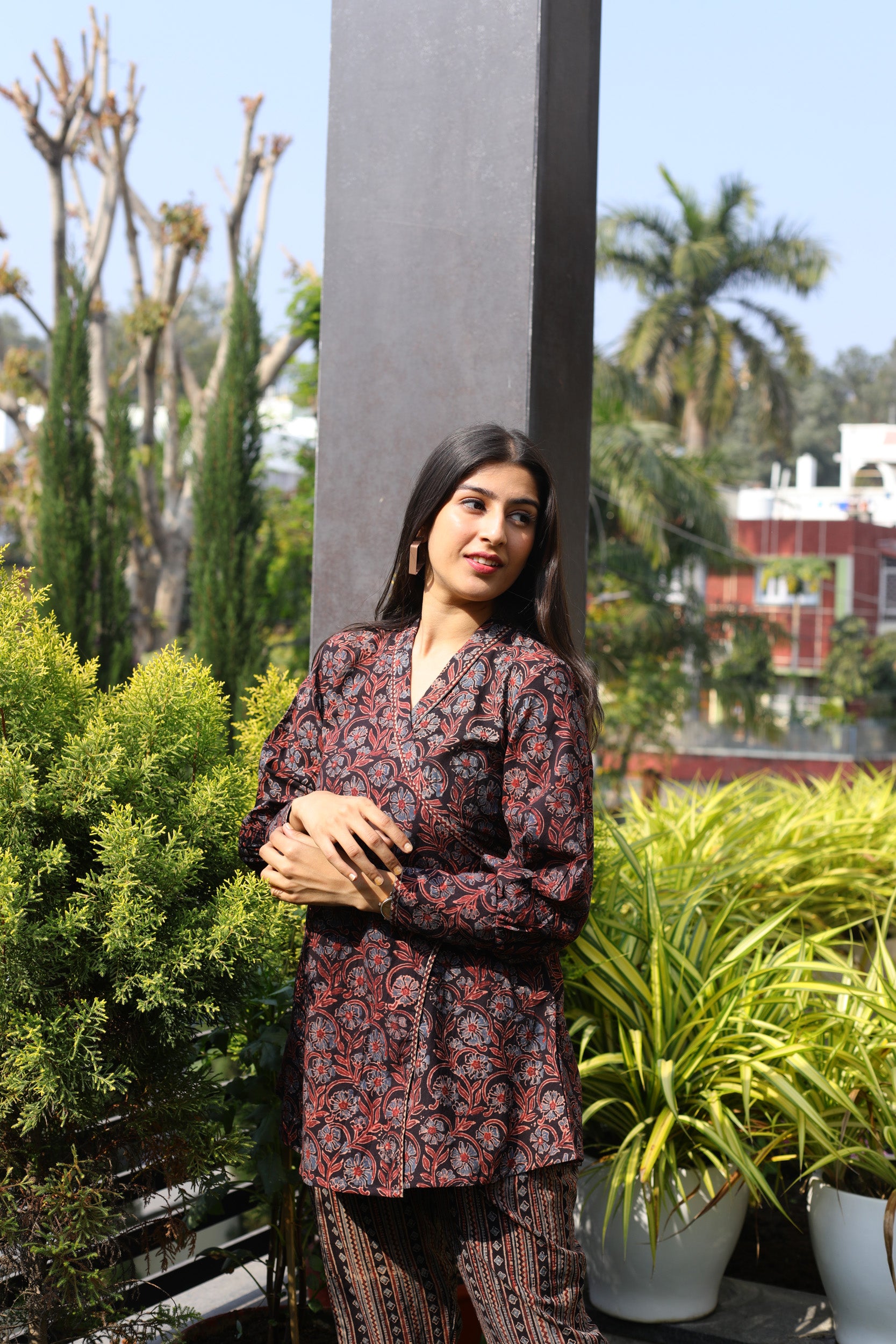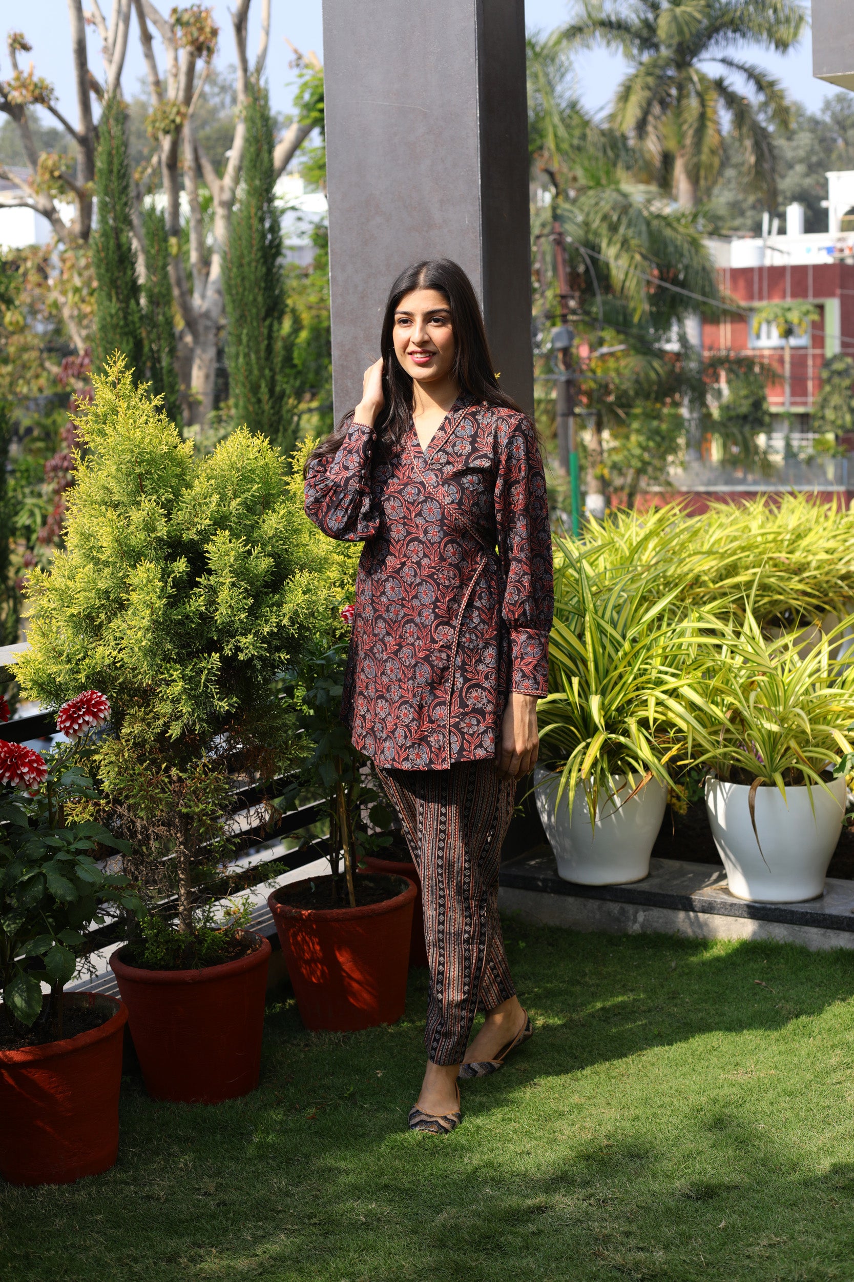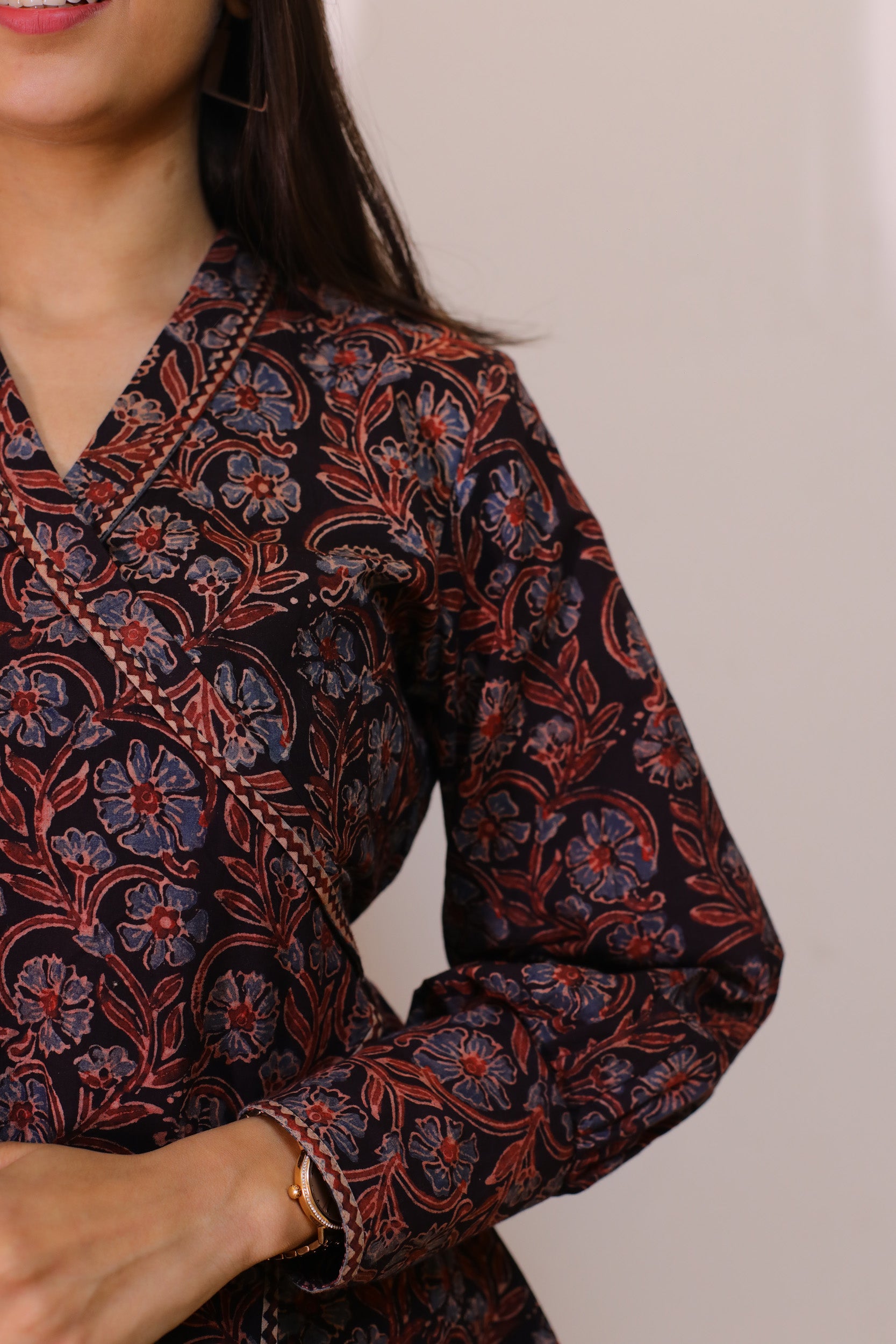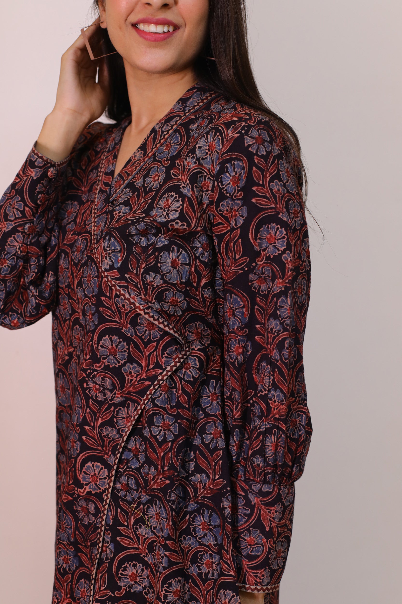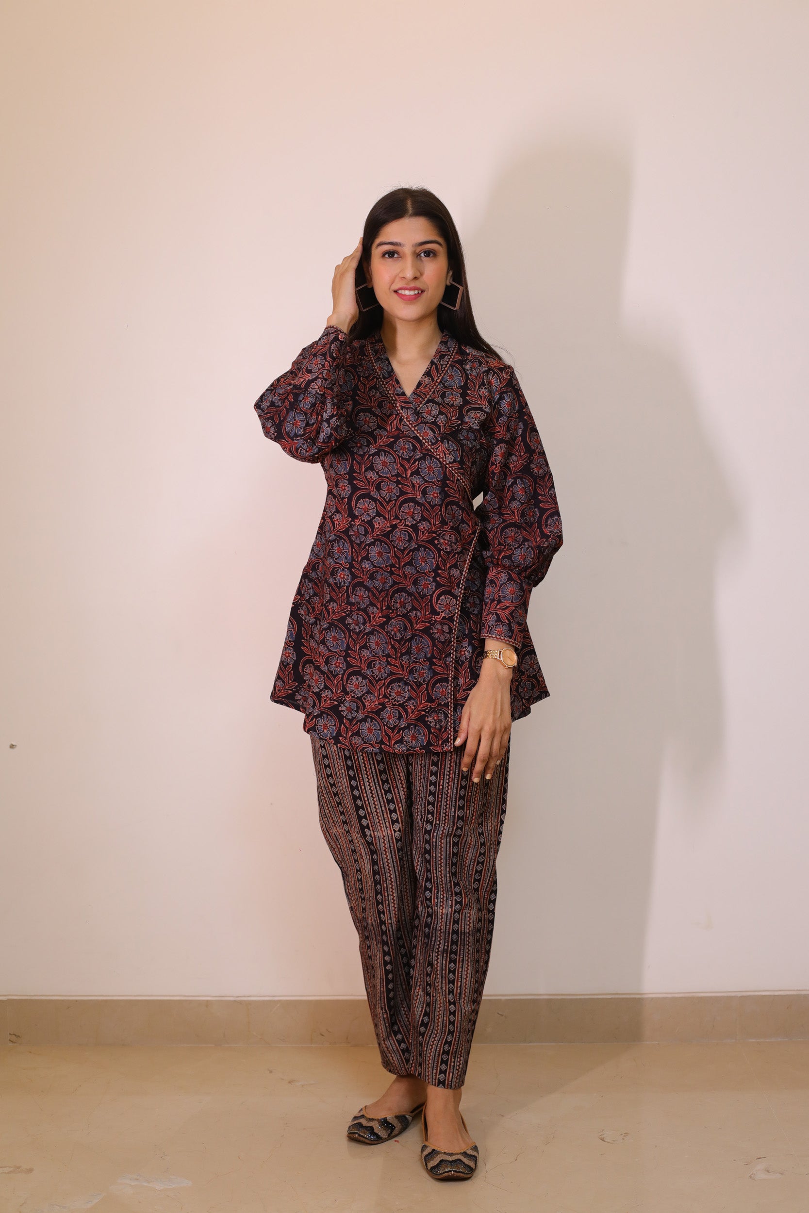 Black Ajrakh print Wrap top