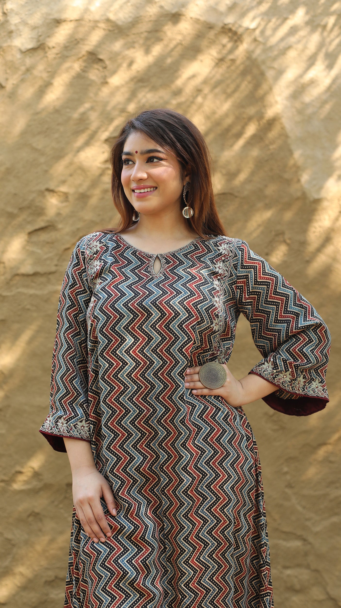 Black Modal zigzag Zari Embroidered Kurta Pant