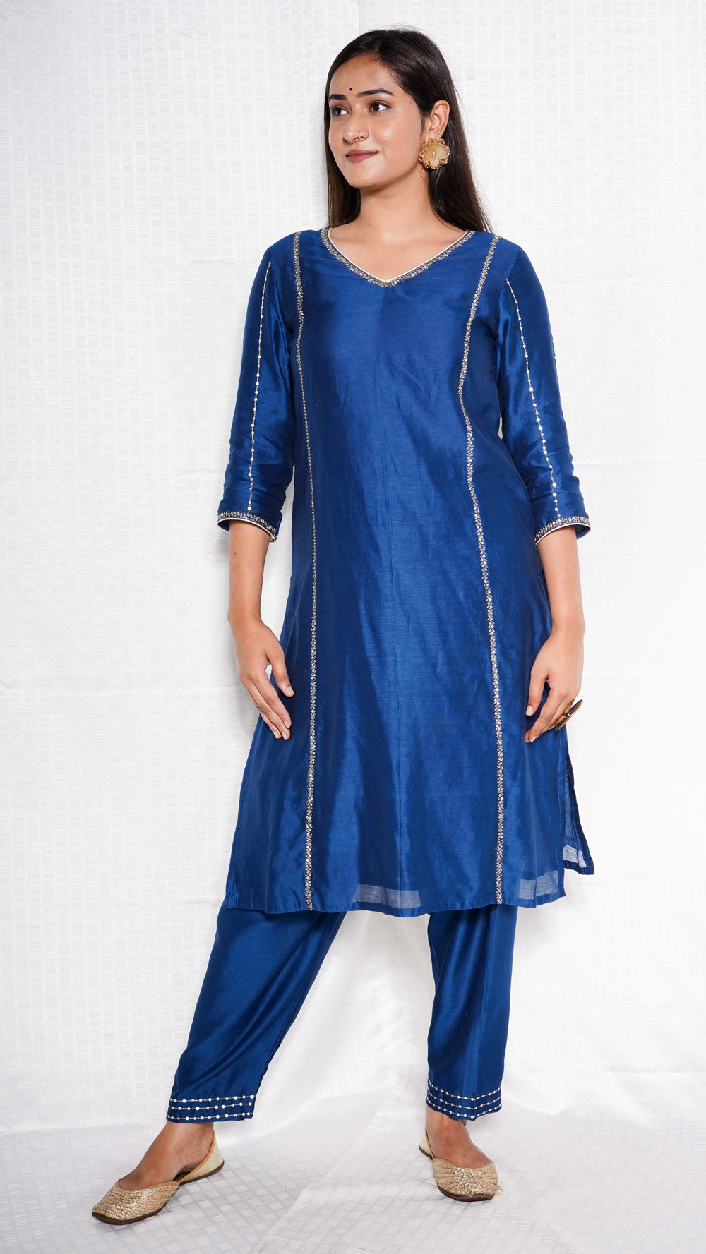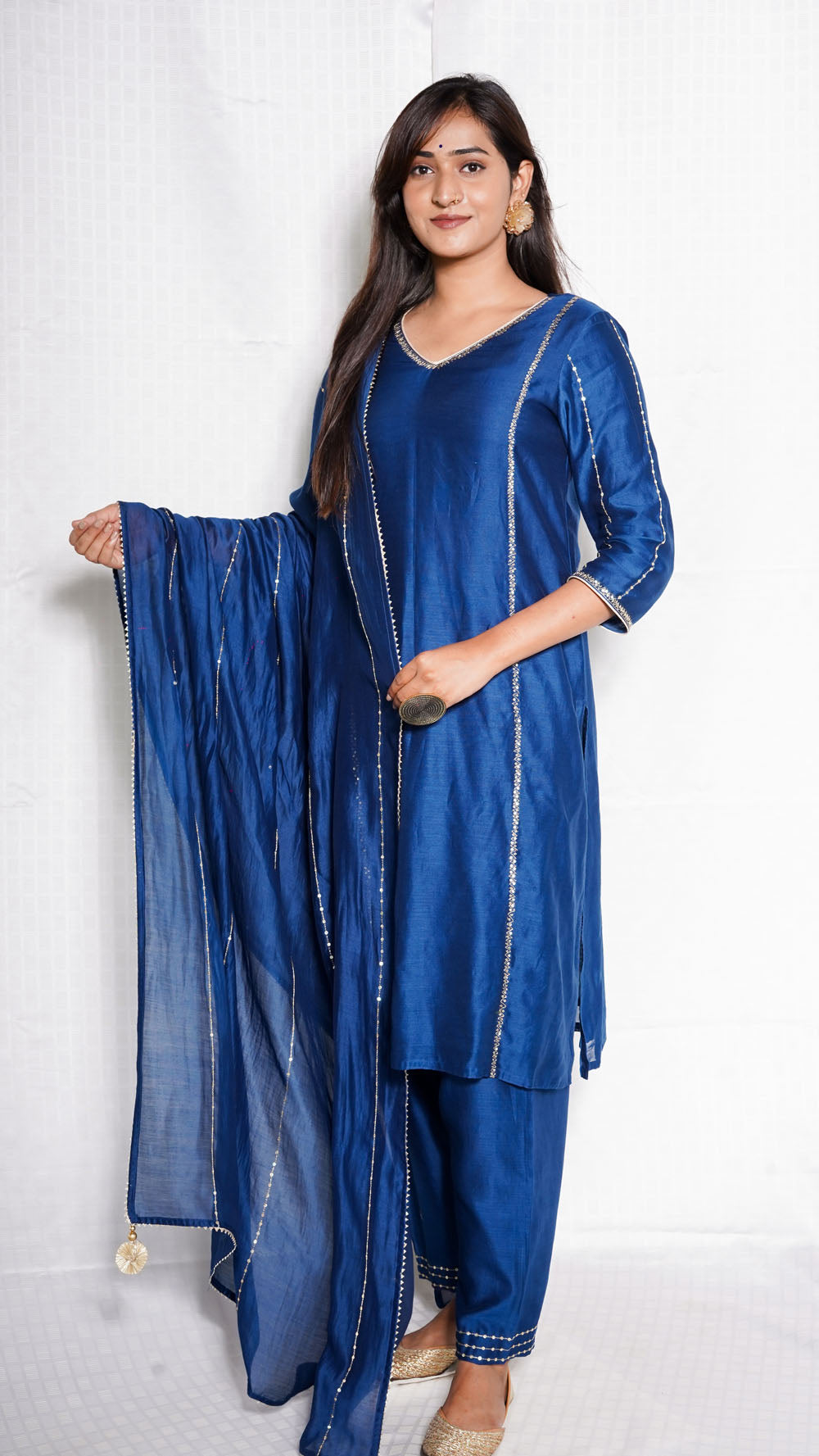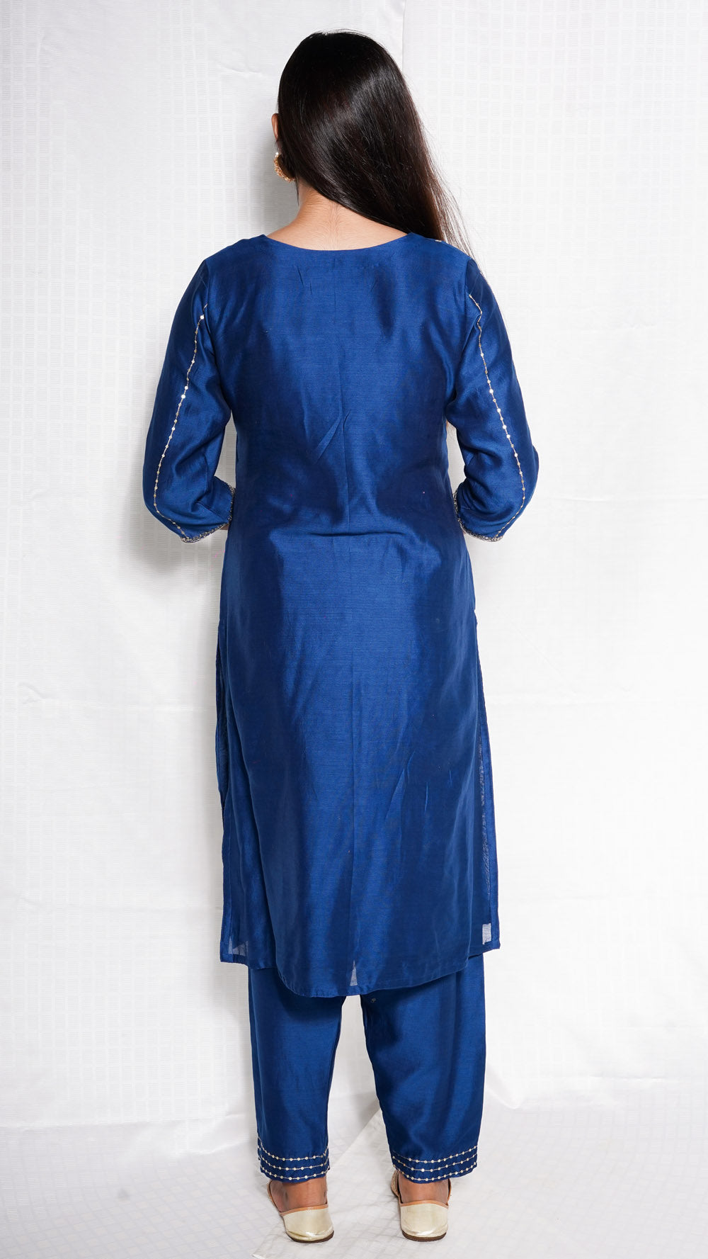 Blue Chanderi Silk Golden Embroidered Suit Set