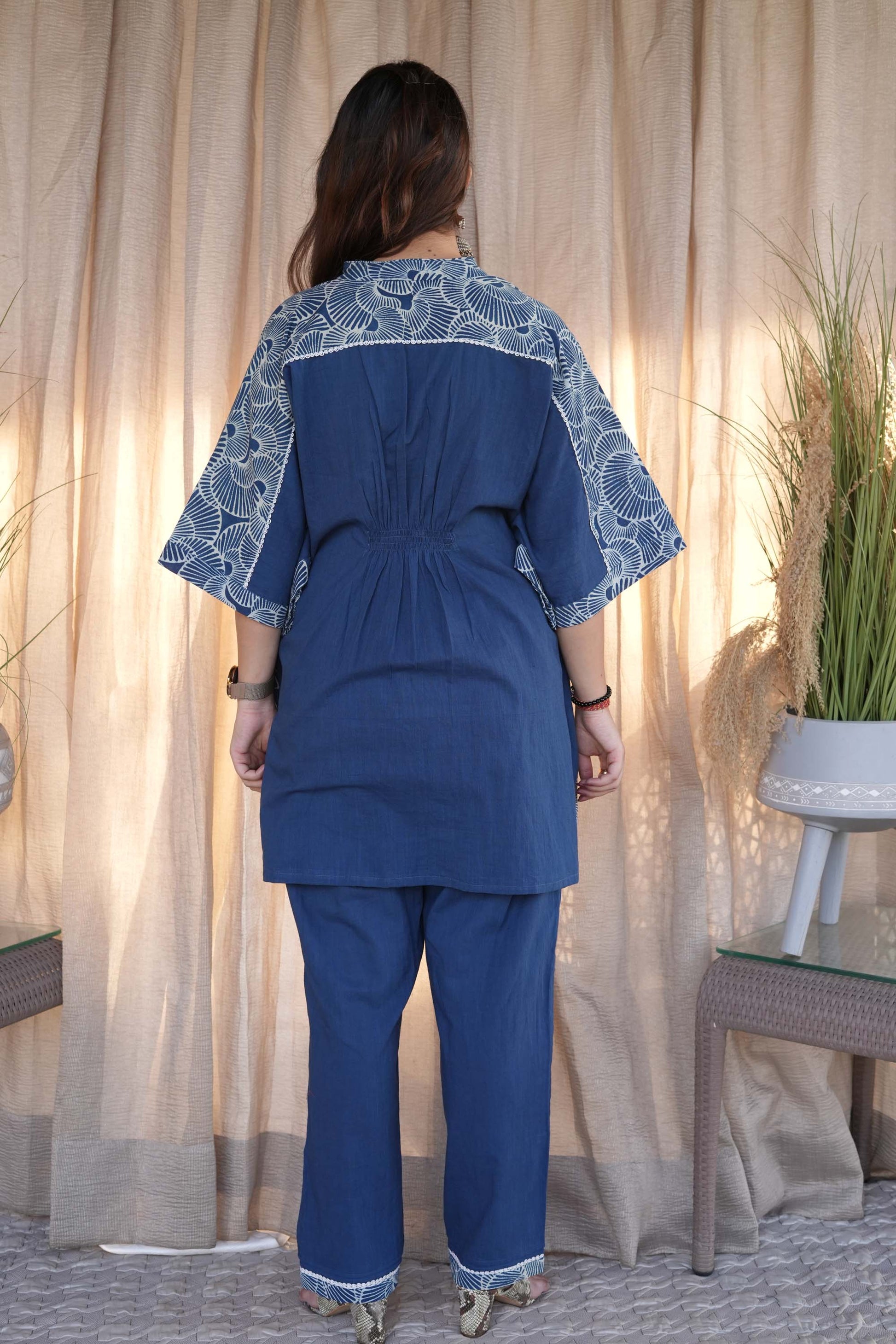 Blue Cotton Slub Kaftan Style Co-ord Set