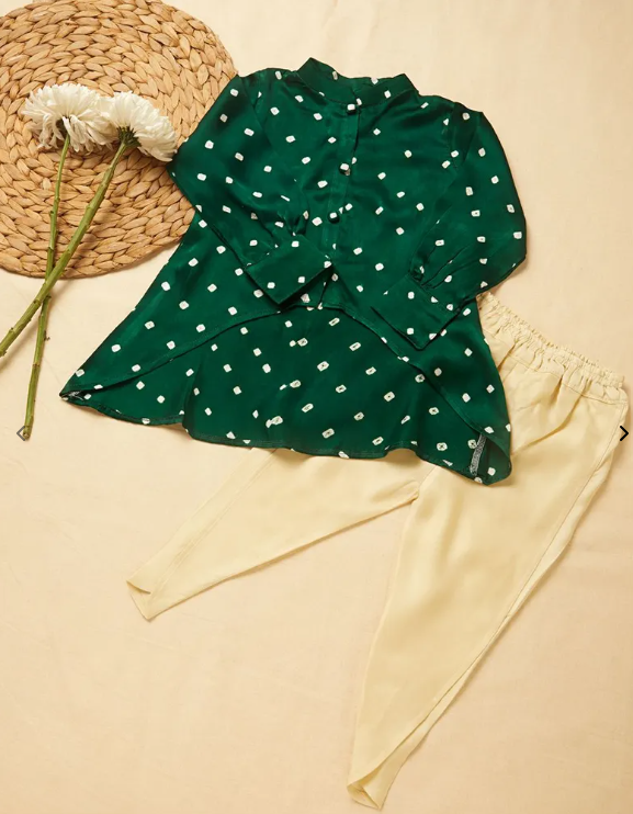 Green Bandhej Modal Silk Top with Dhoti Pants -Set of 2