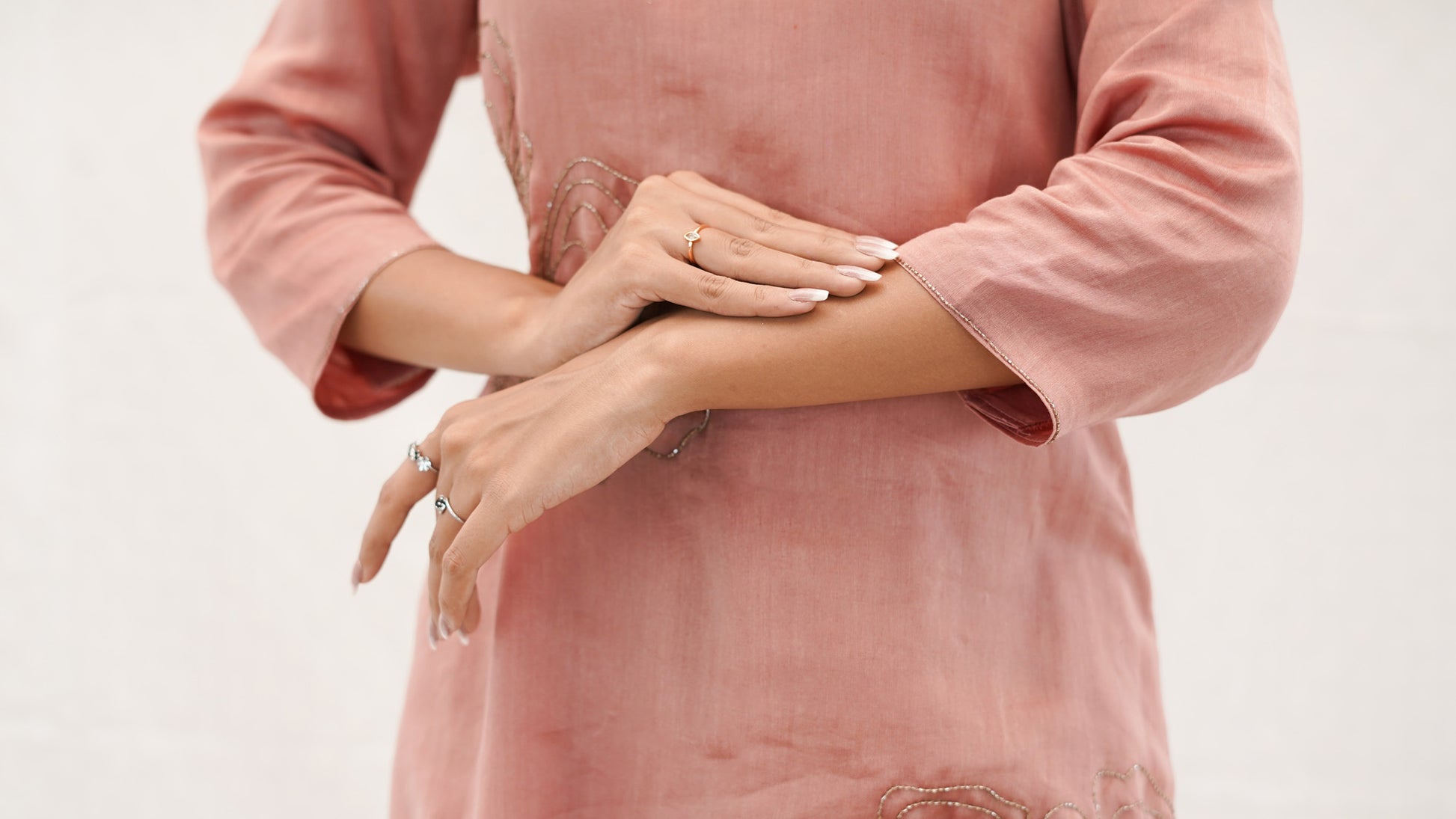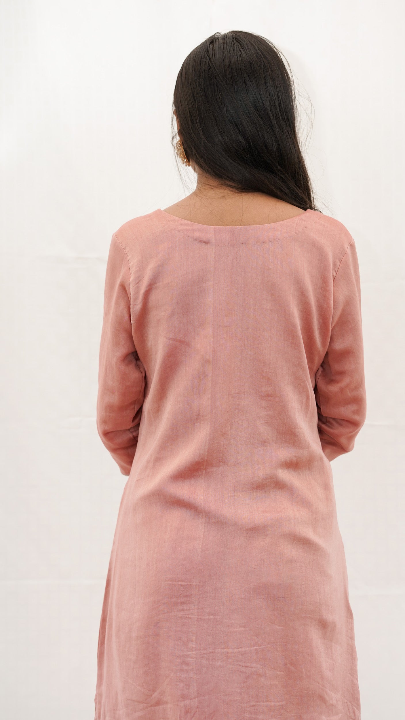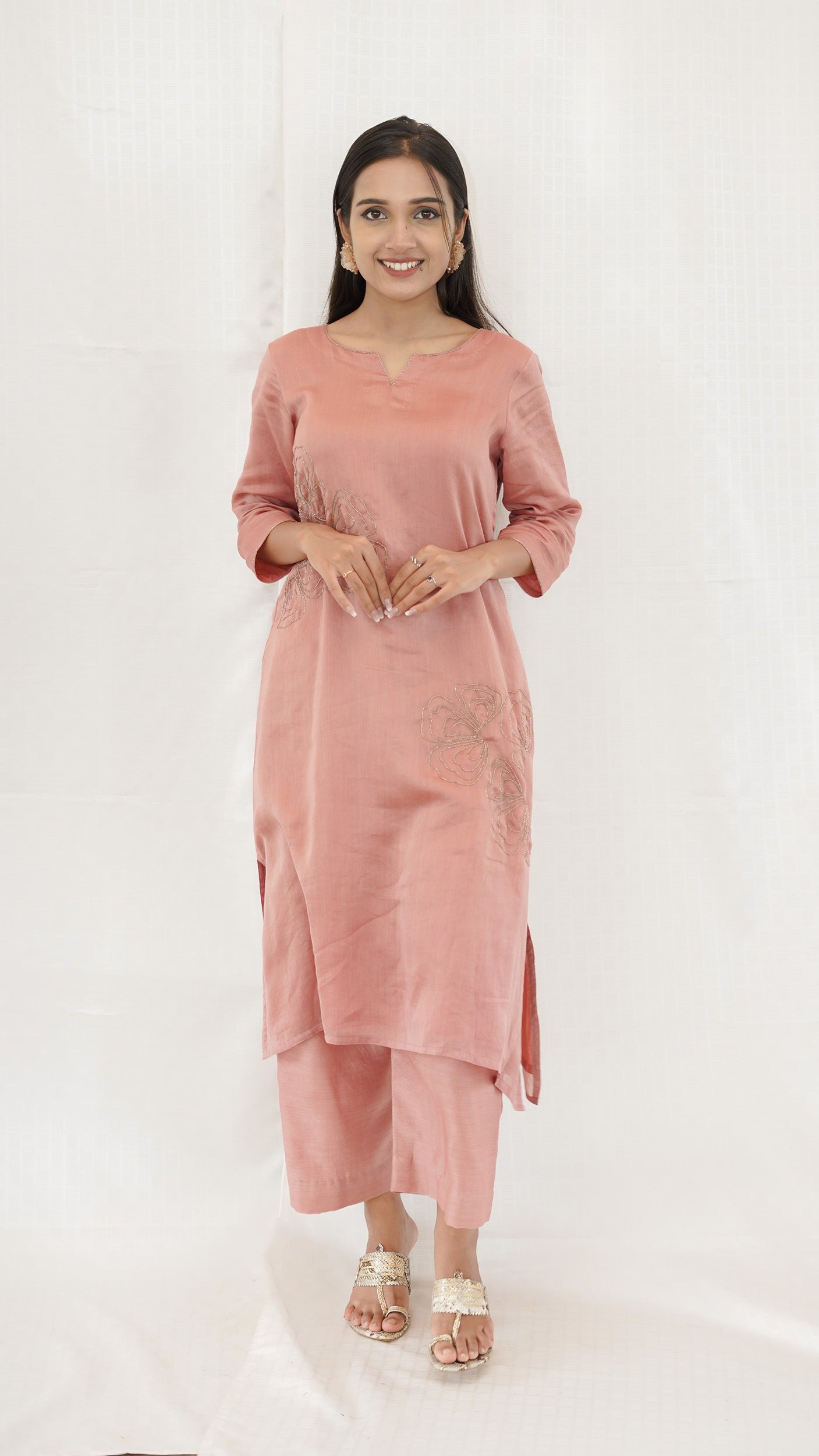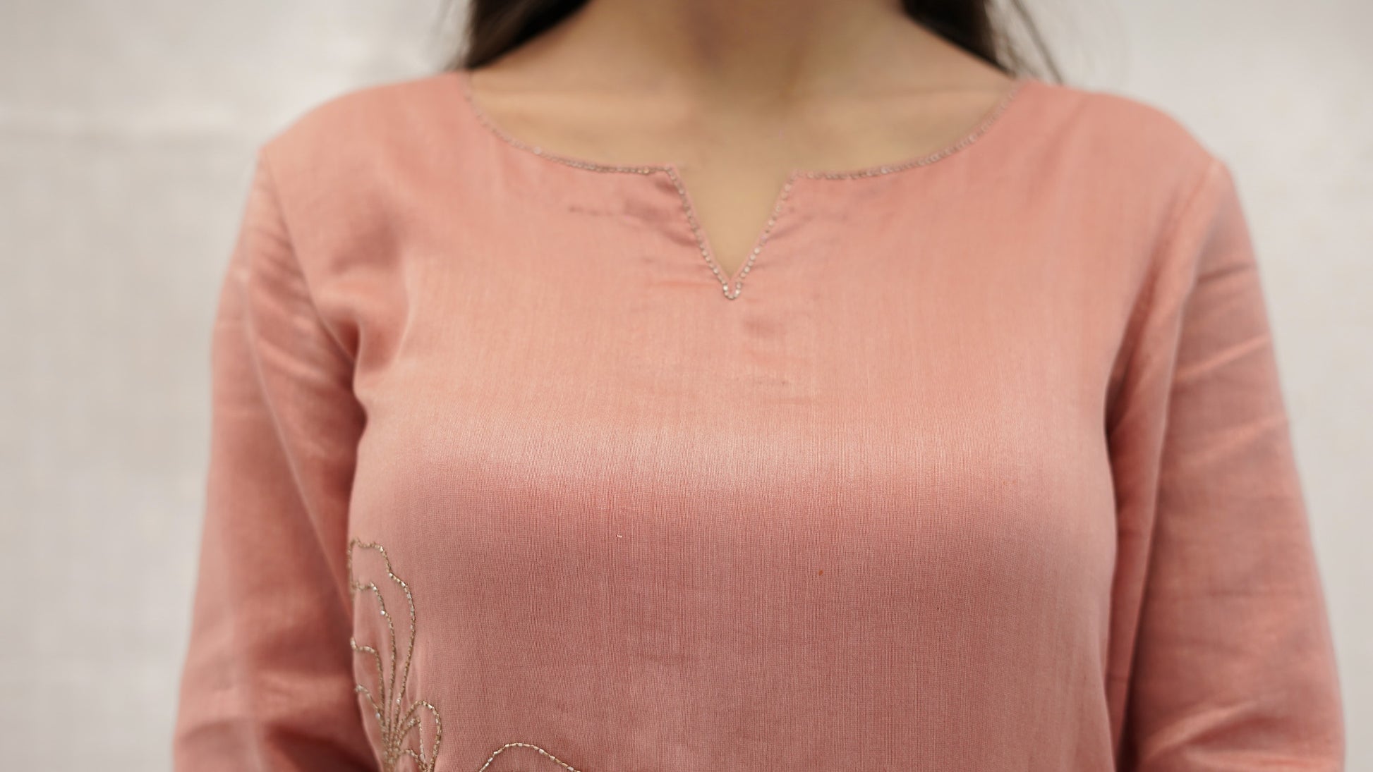 Pastel PEACH Chanderi hand embroidered Kurta pant