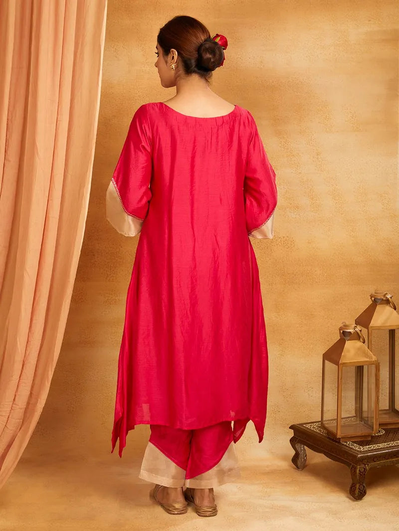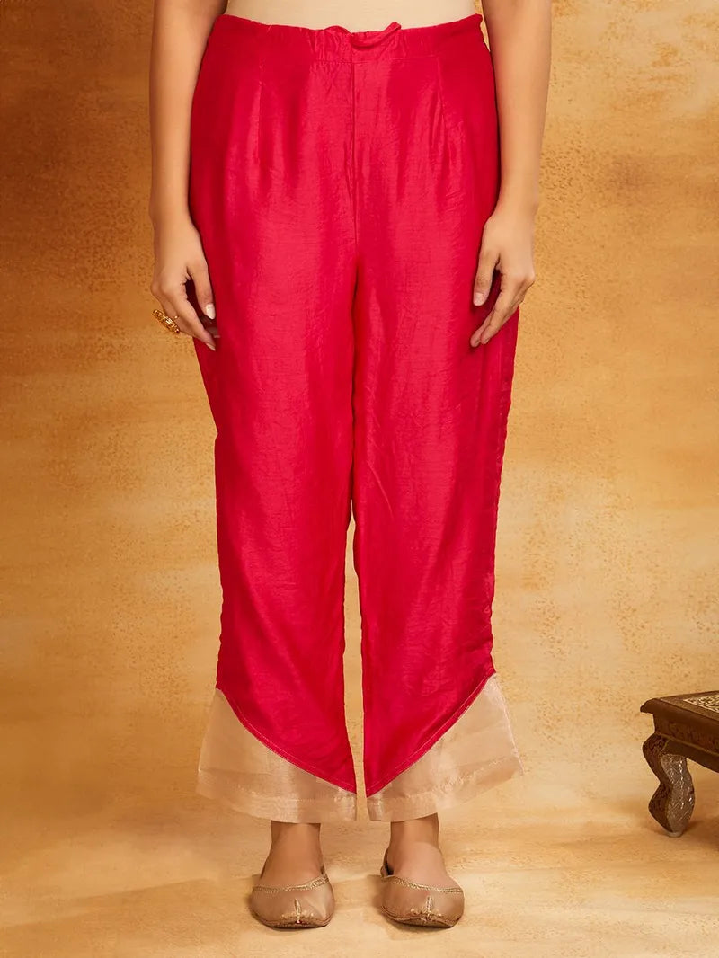 Pair it with chanderi silk pant which has elasticated waist.