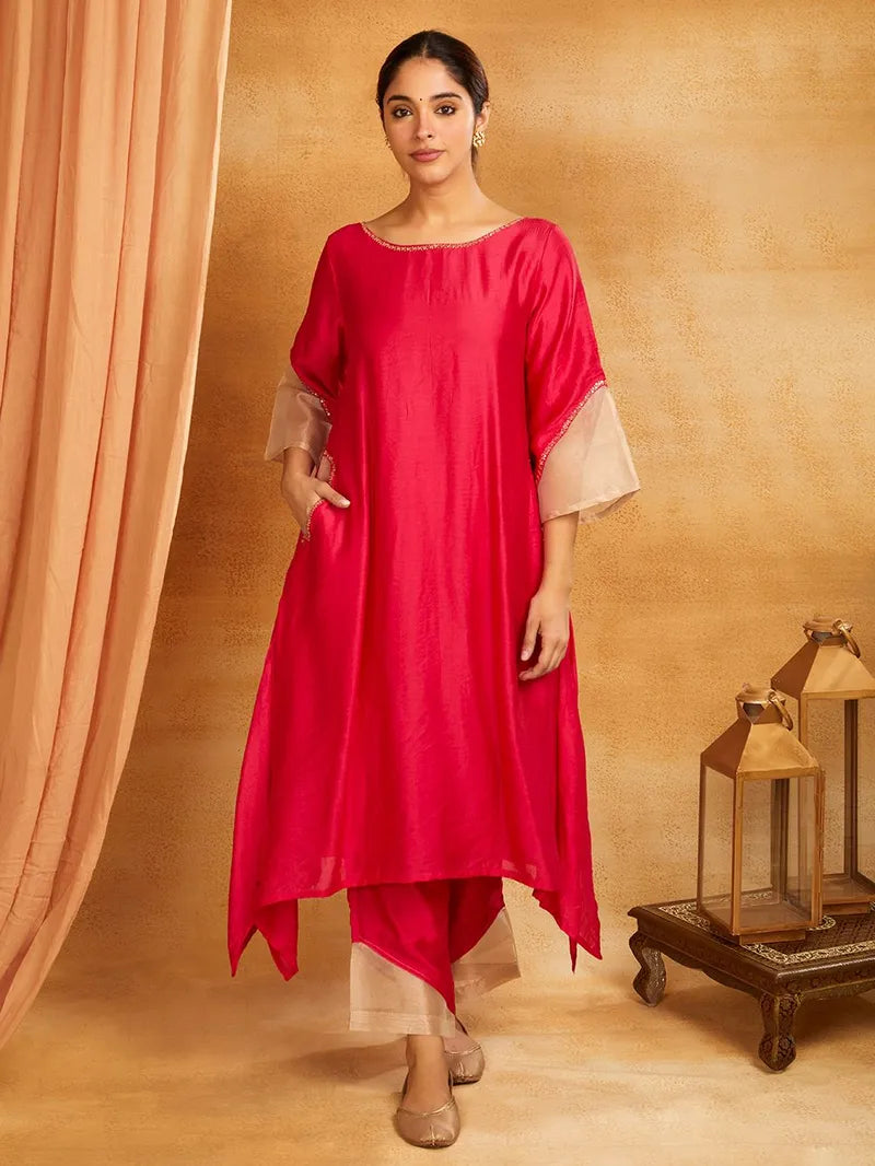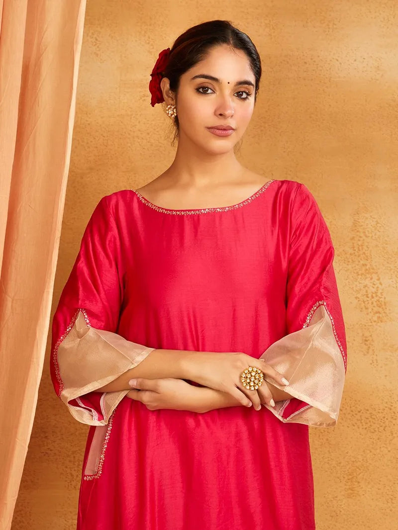 Pink Chanderi Silk Tissue Sleeves Co-ord Set