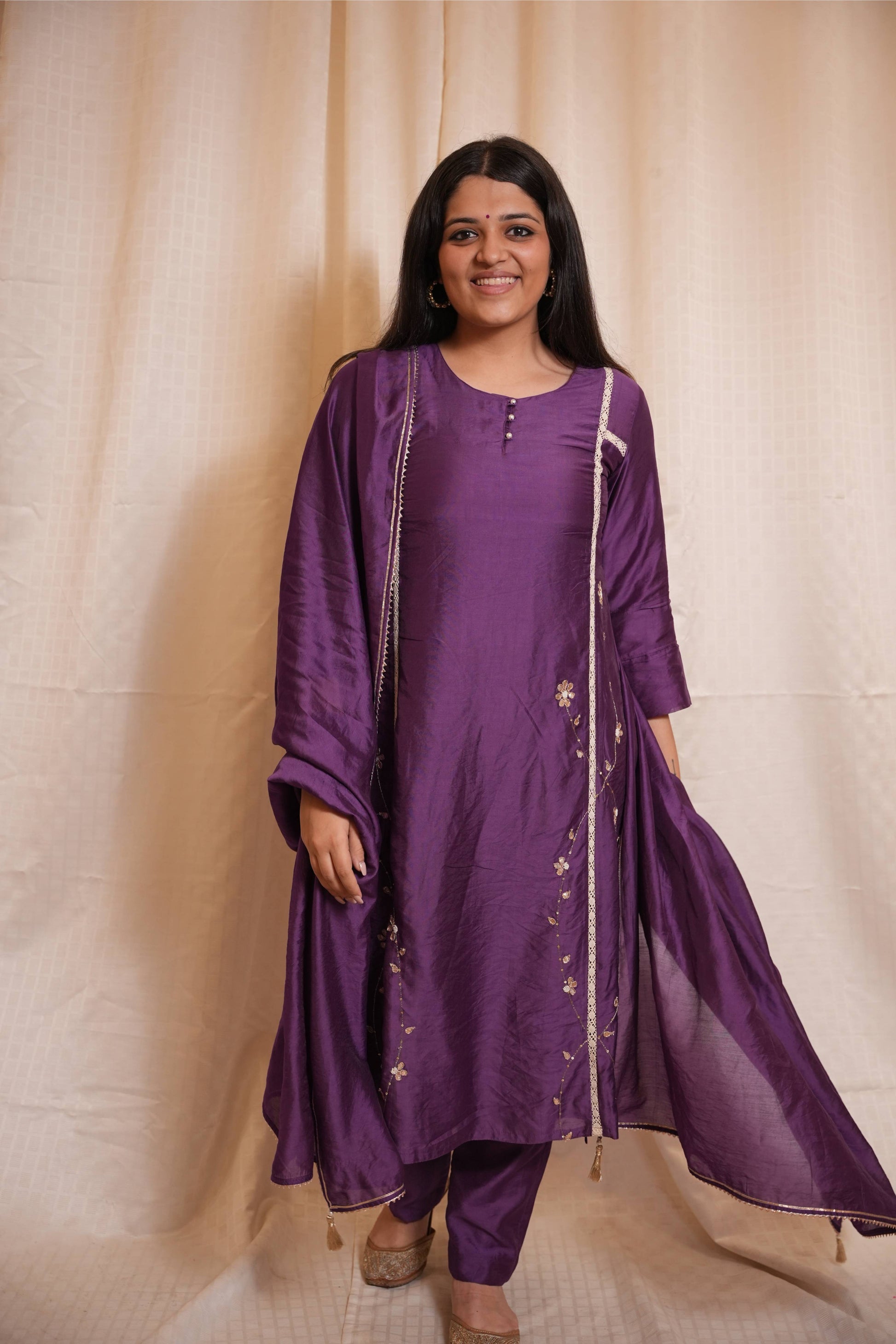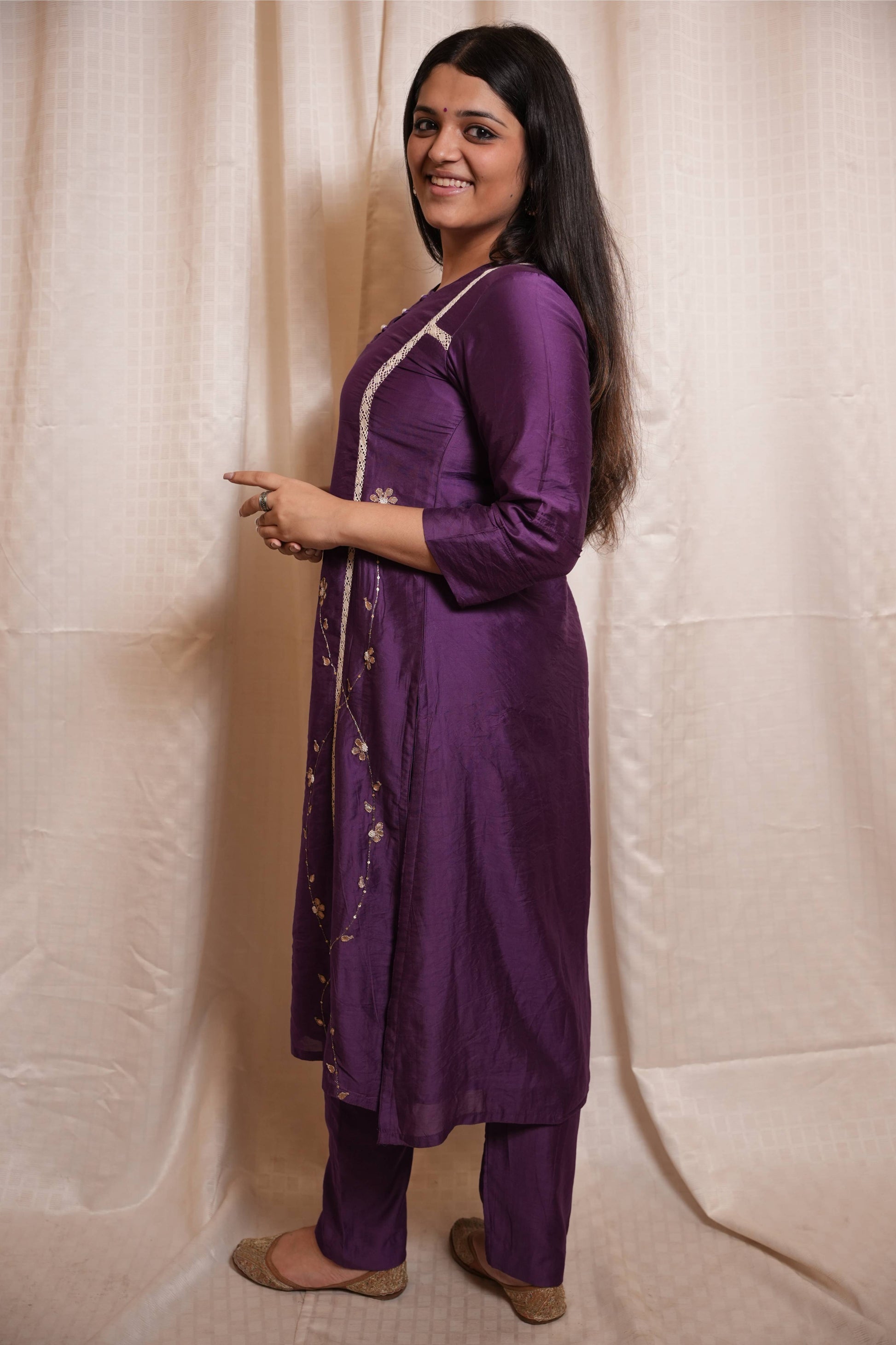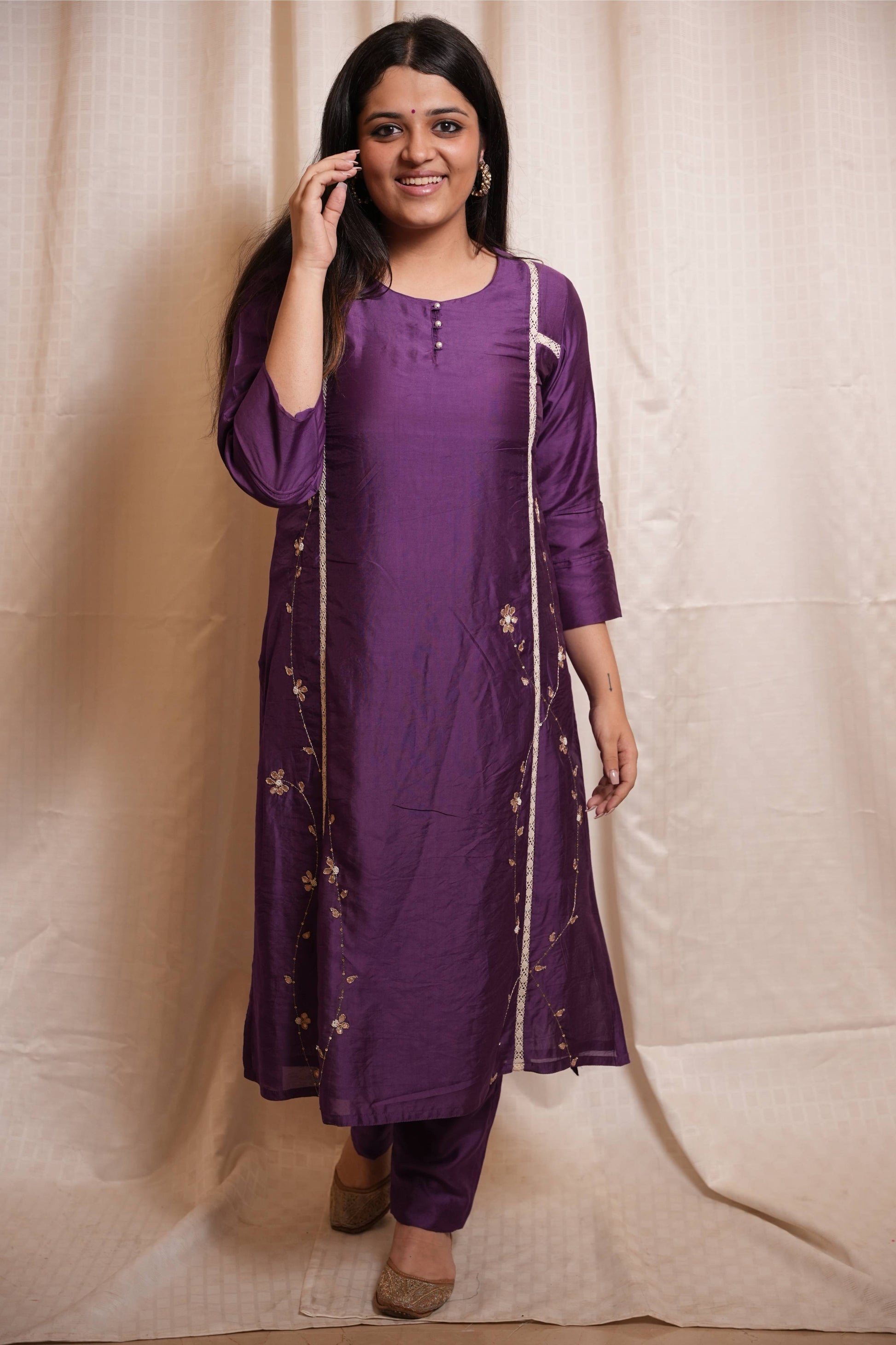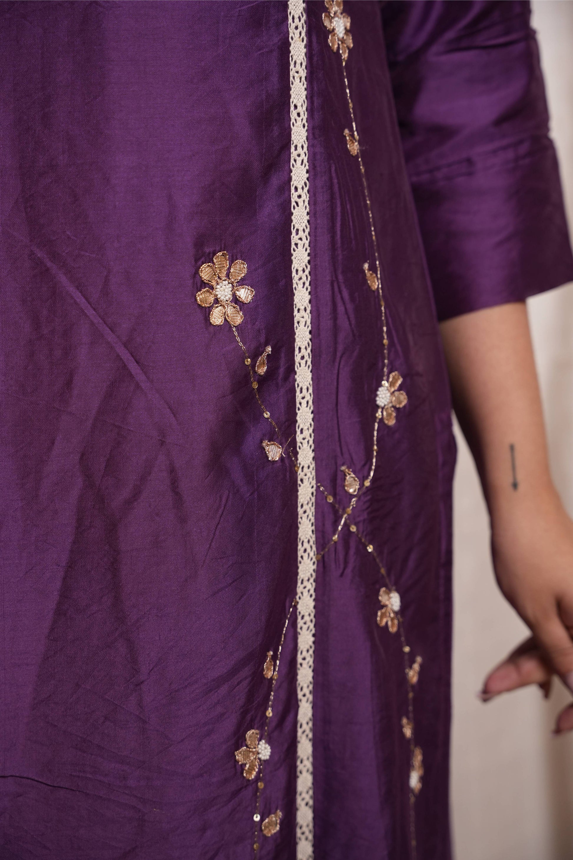 Purple Chanderi Lace Work Gotta Patti Kurta And Pant