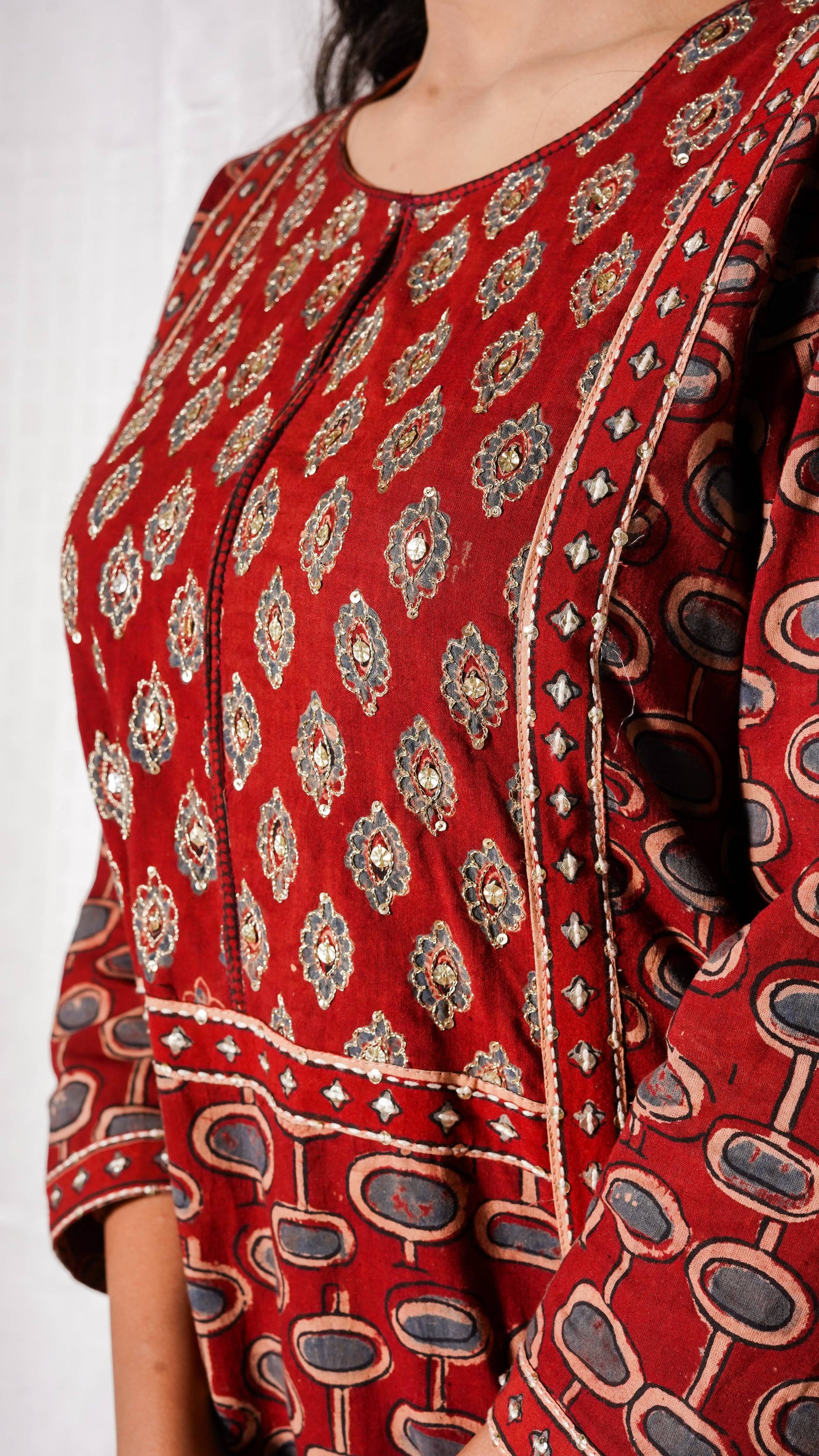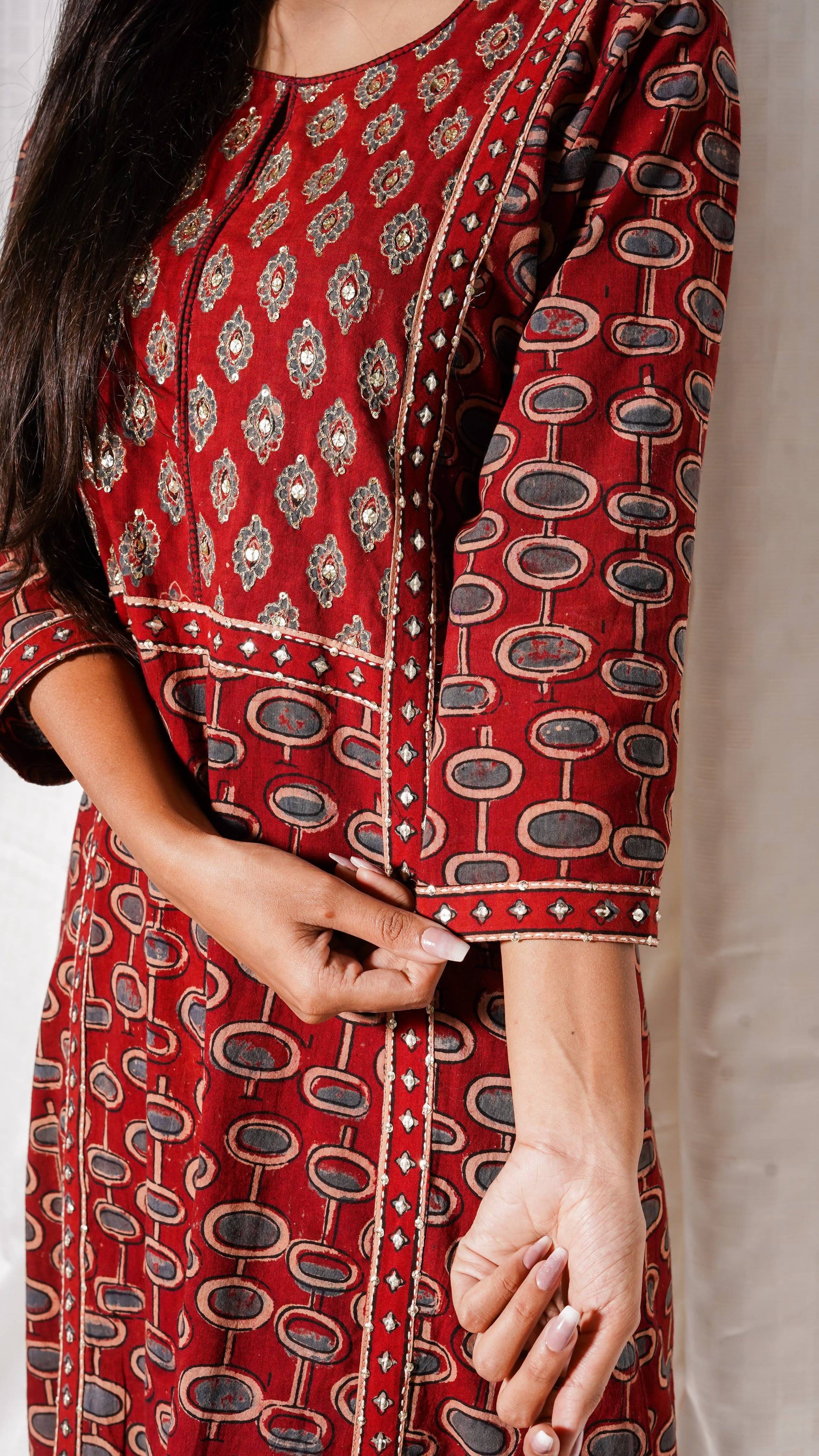 Red Ajrakh Hand Block Printed Cotton Kurta