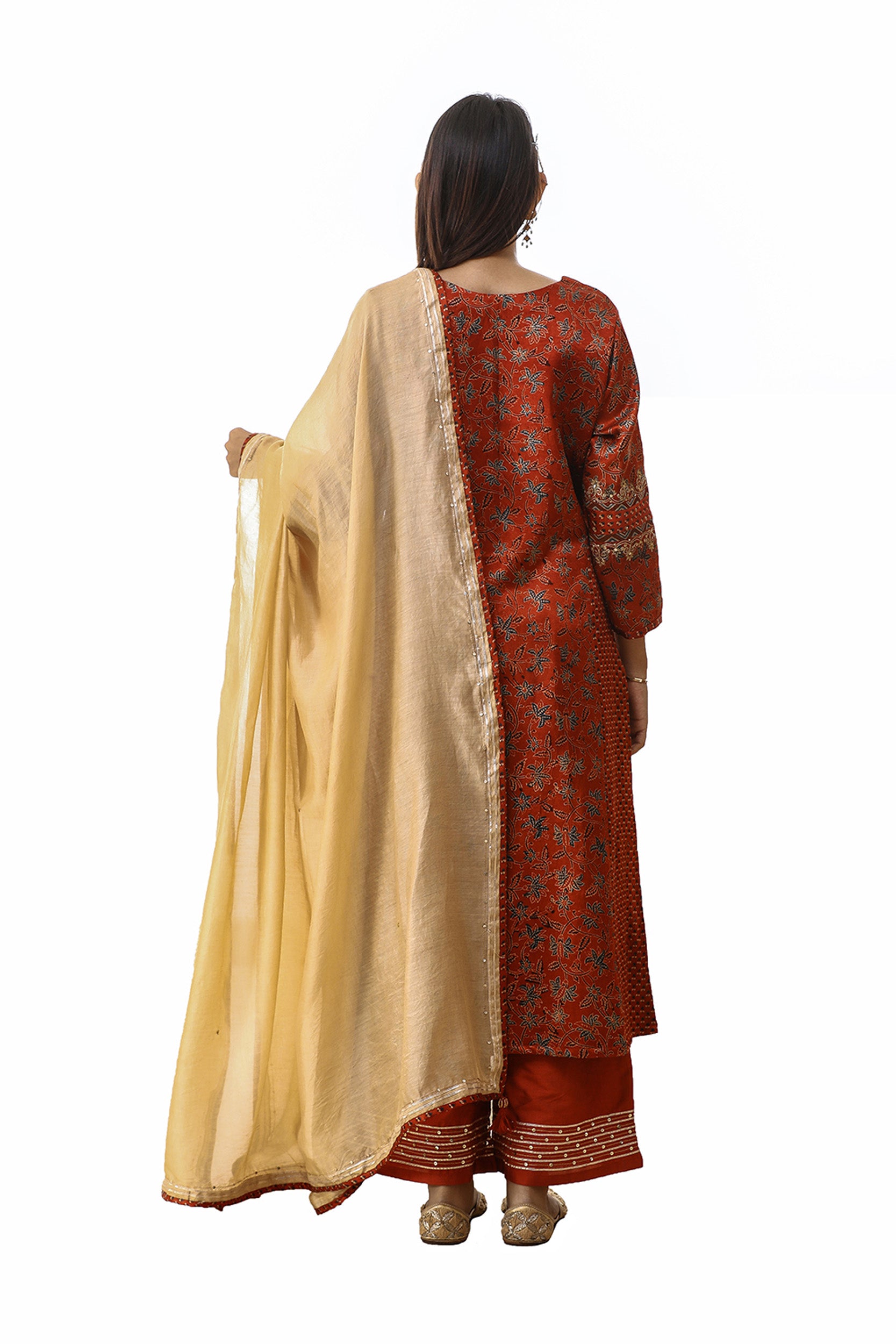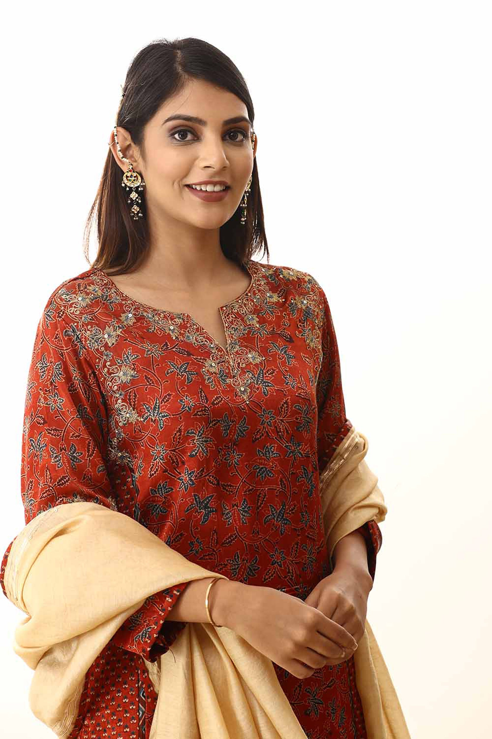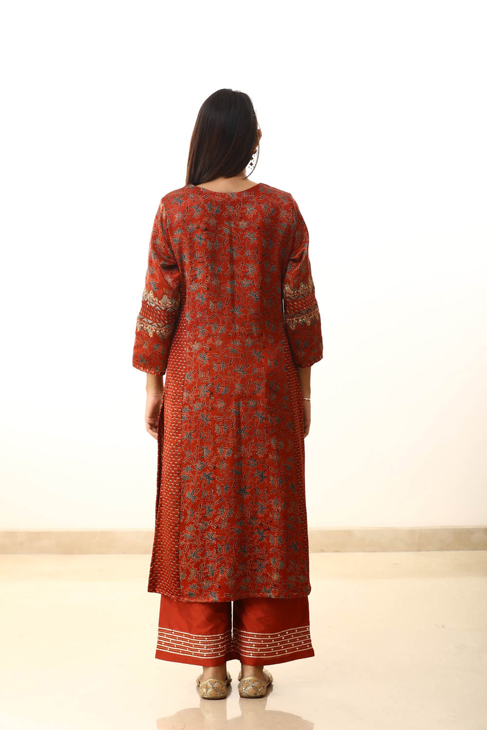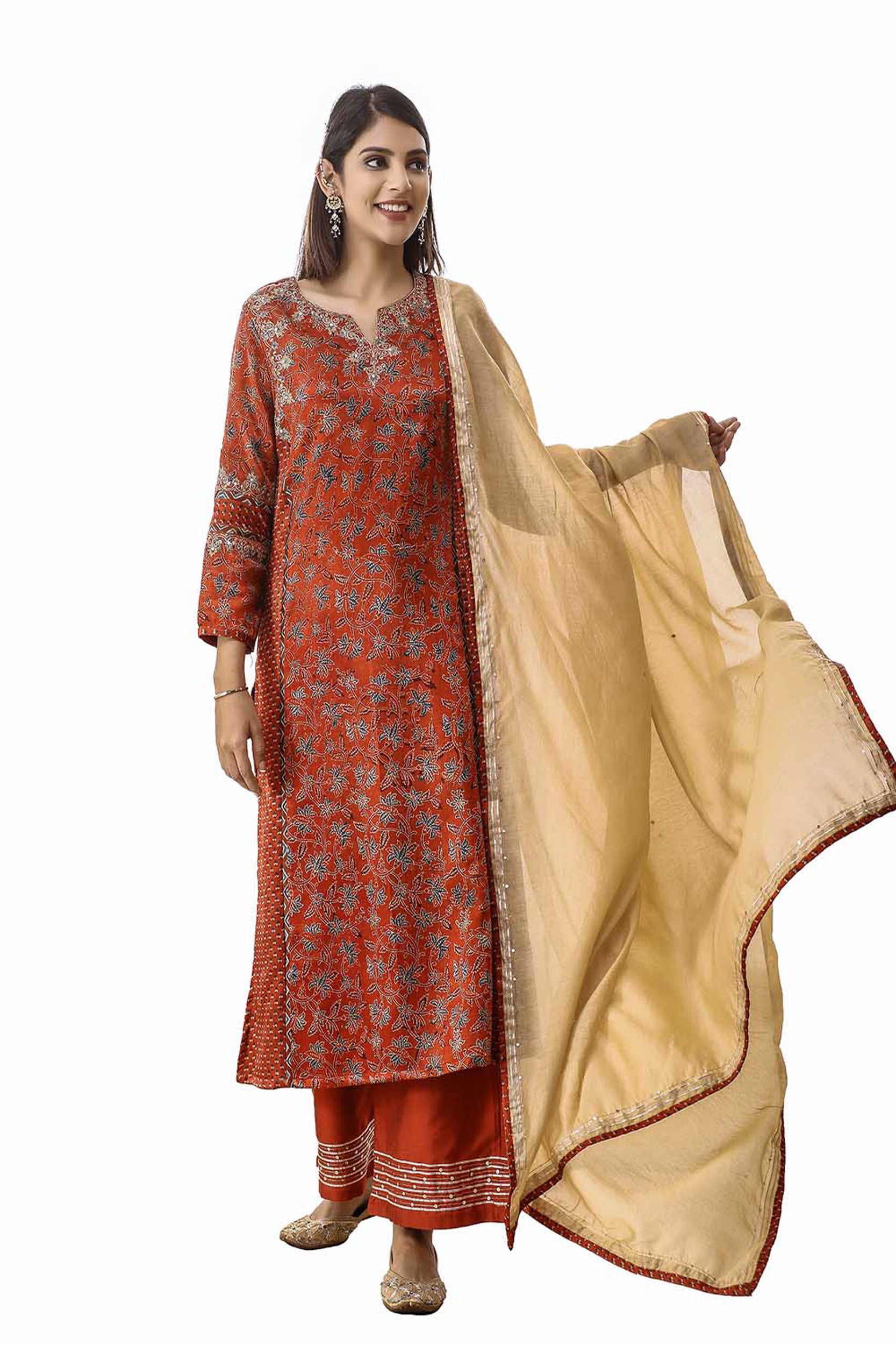 Red zari embroidered mashru silk suitset