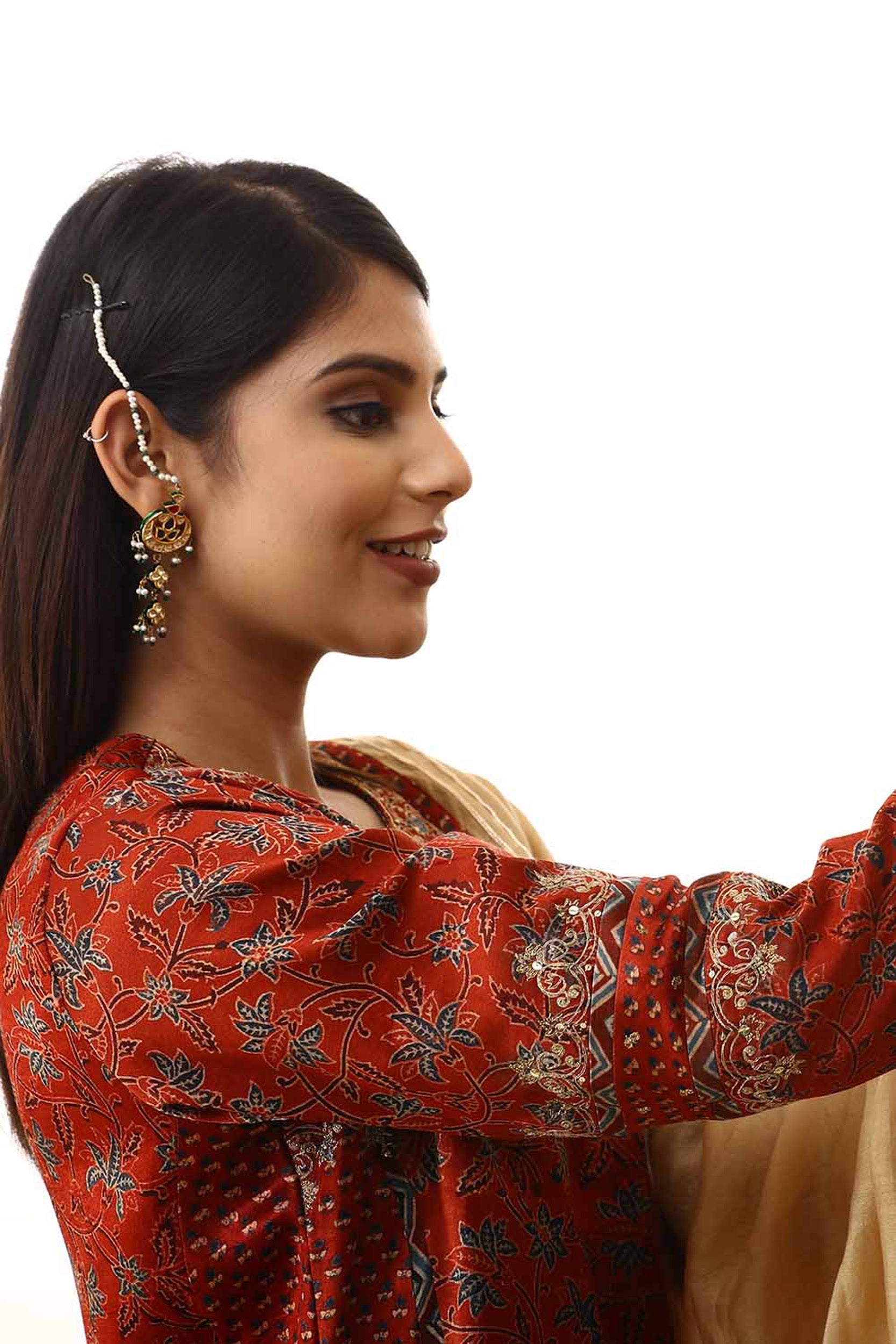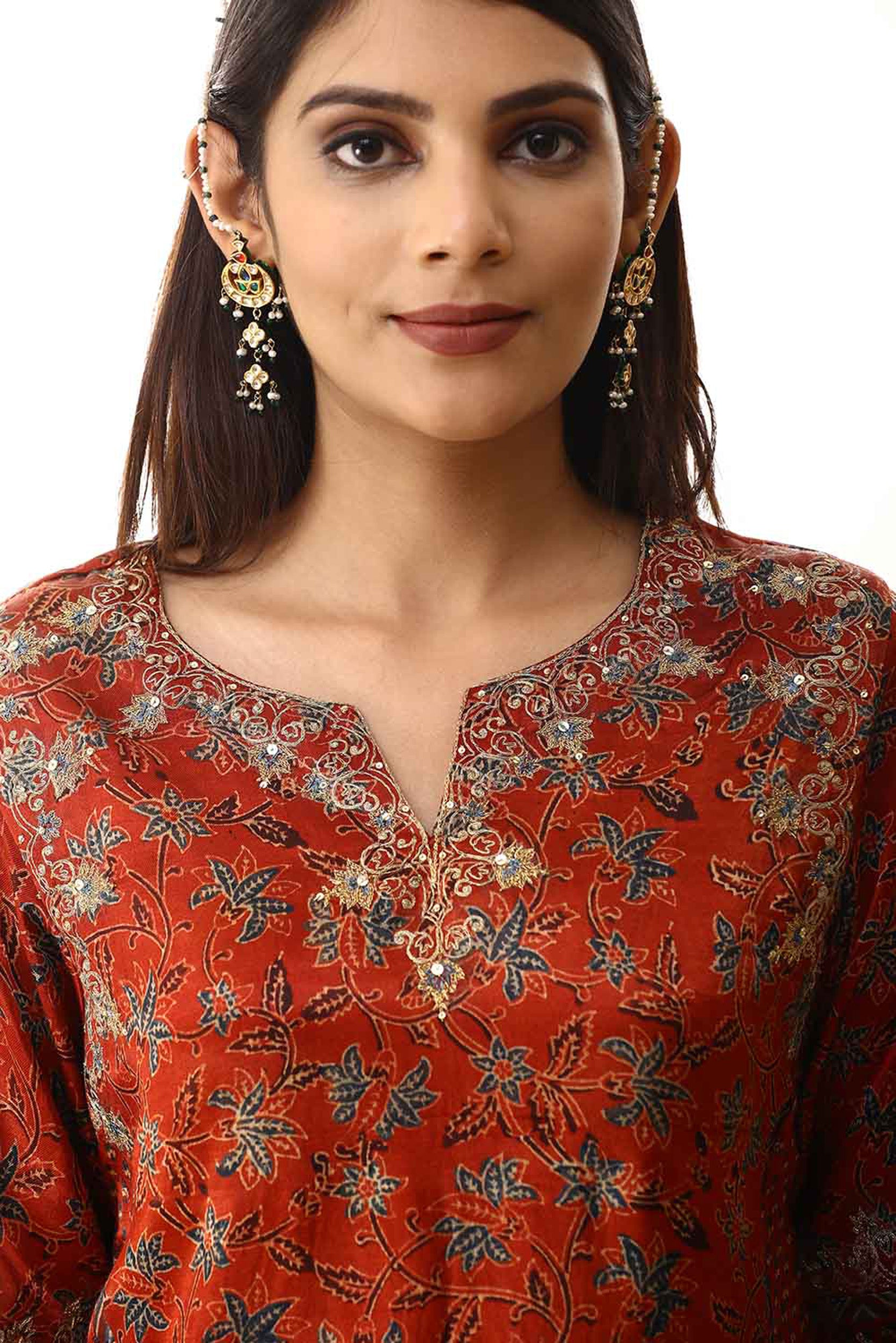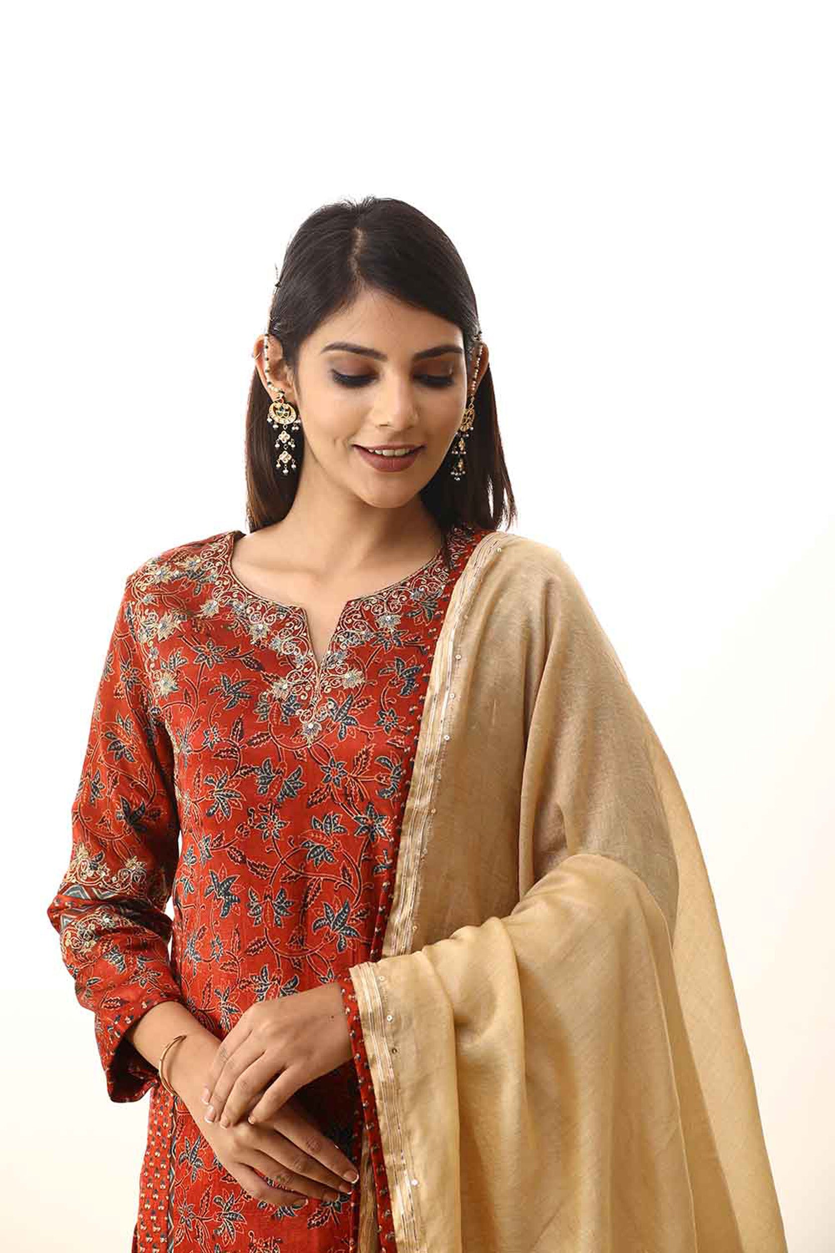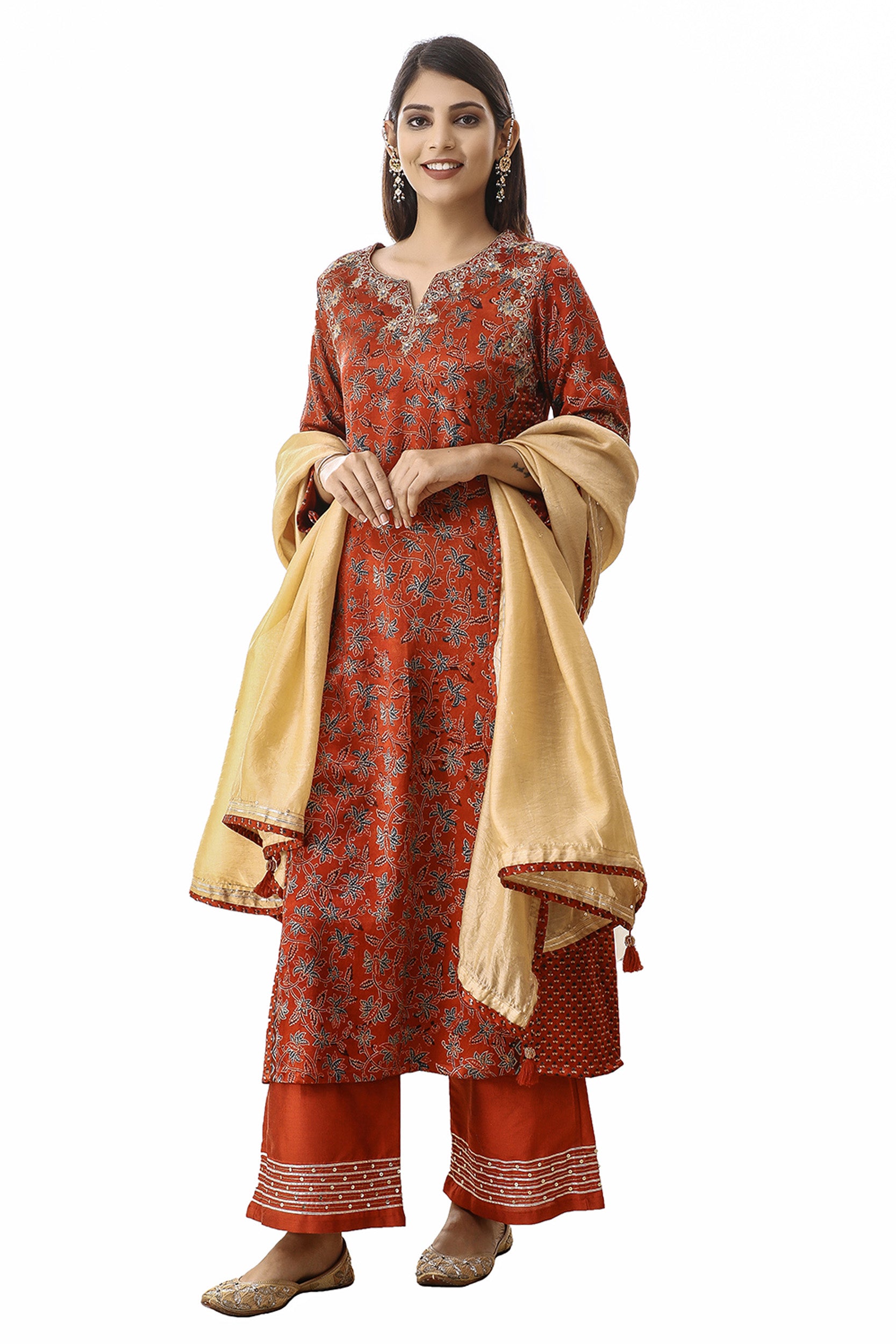 Red zari embroidered mashru silk suitset