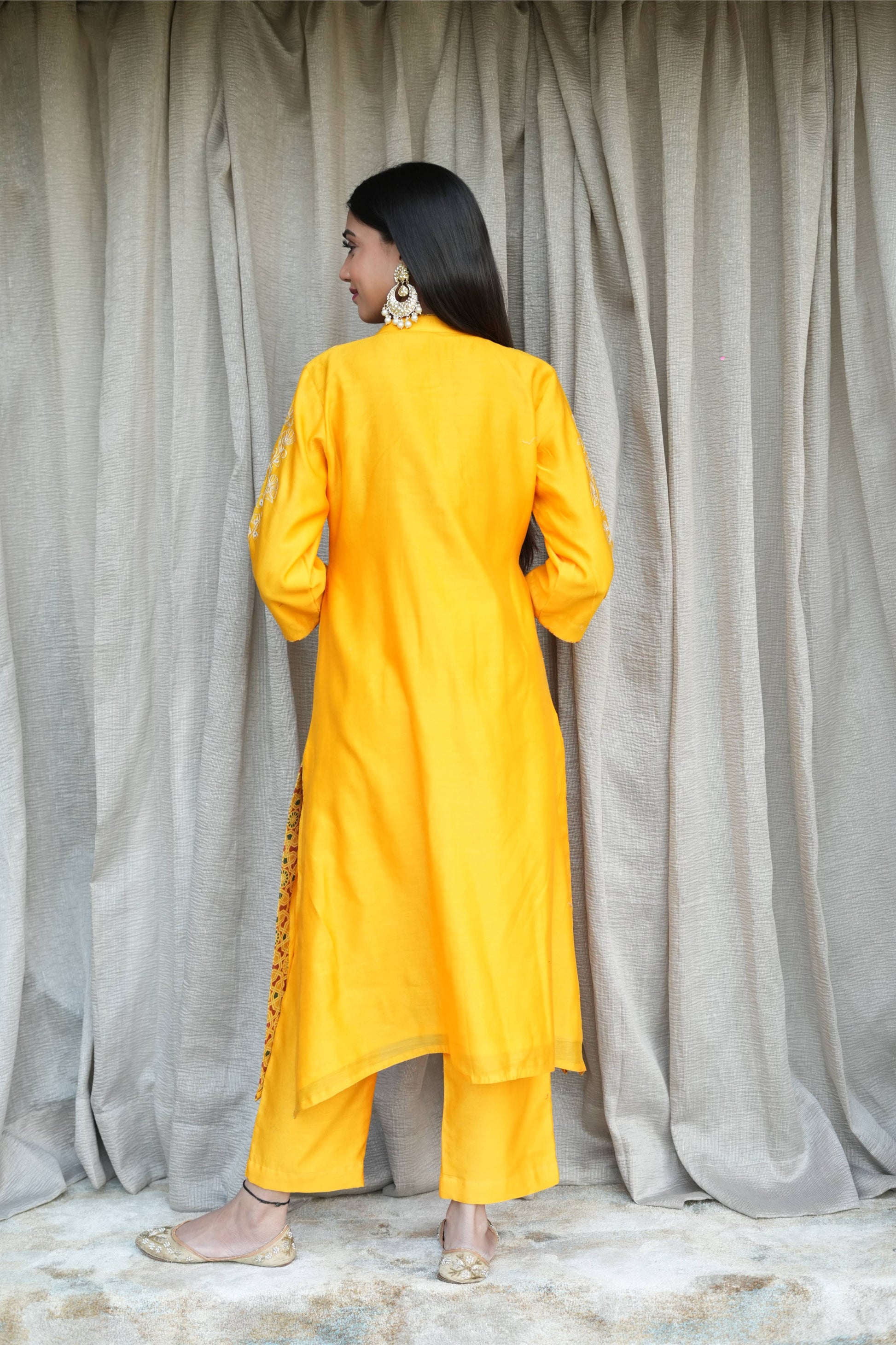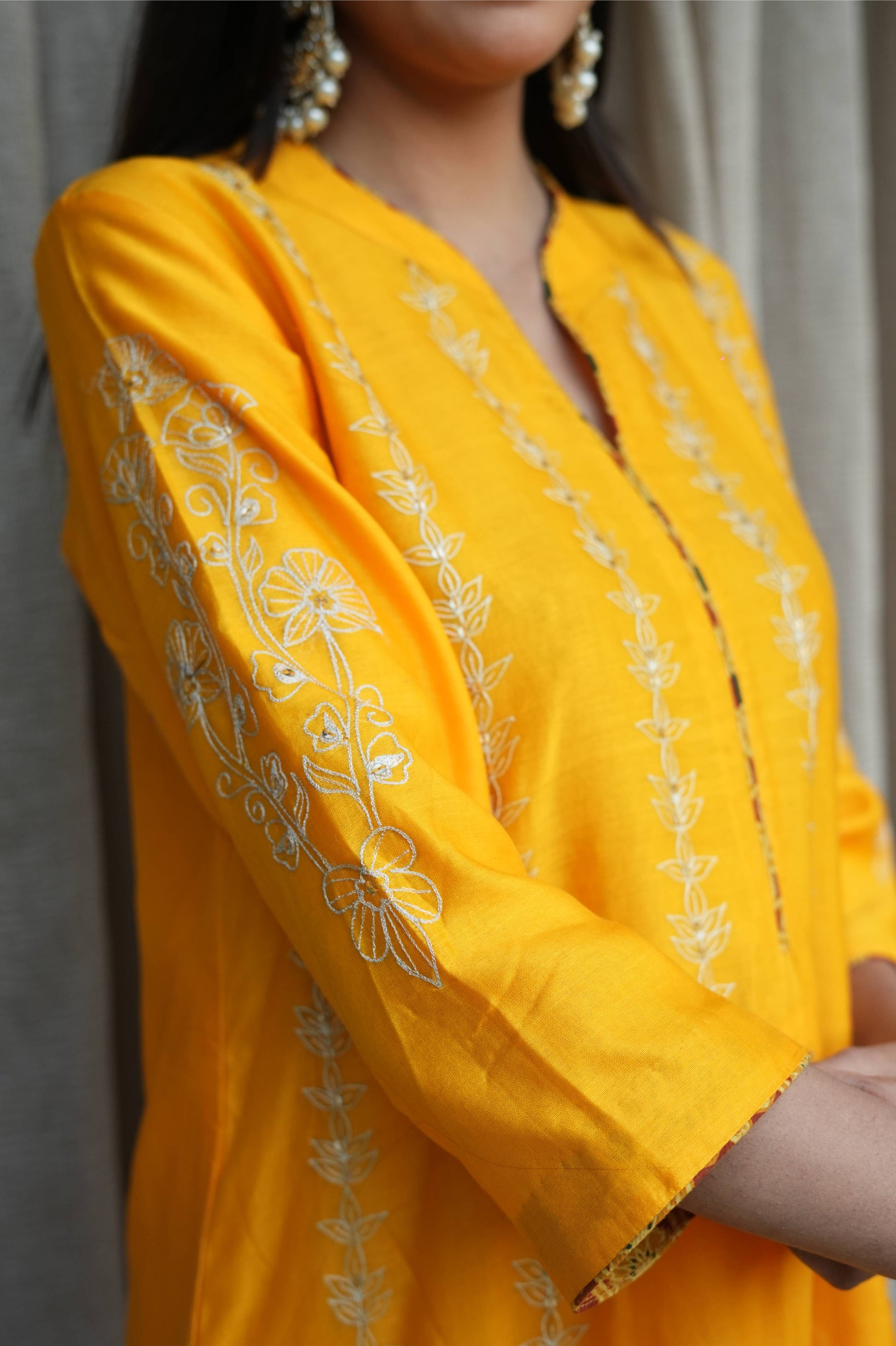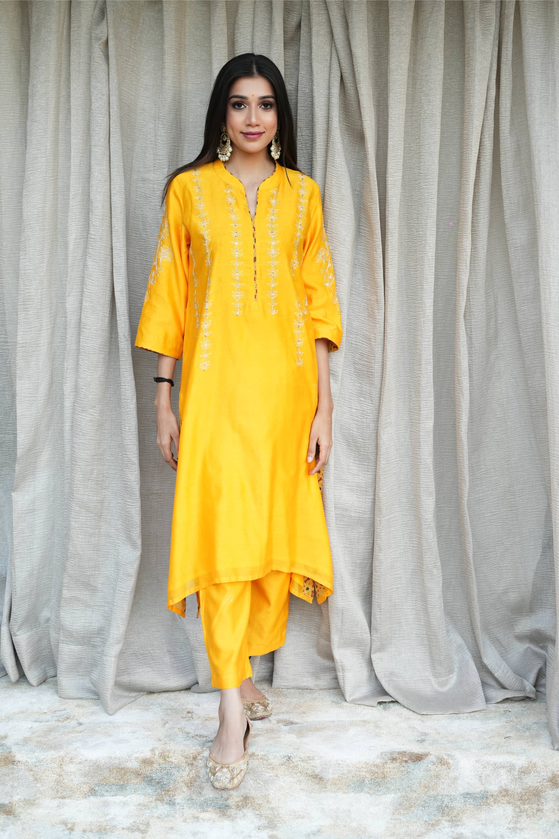 2.It is chanderi silk set machine embroidered set which has sequence work.